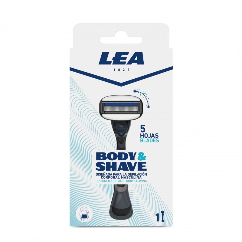 5 Blades system designed for male body shave. The pivoting and rounded head adapts to the hardest to reach areas of the body, and the protective bar and the 2 lubricating strips provides extra gliding and skin protection. The non-slip ergonomic handle provides a comfortable and safe shaving even with wet hands. The open architecture on the back of the blades makes it easy to rinse them.