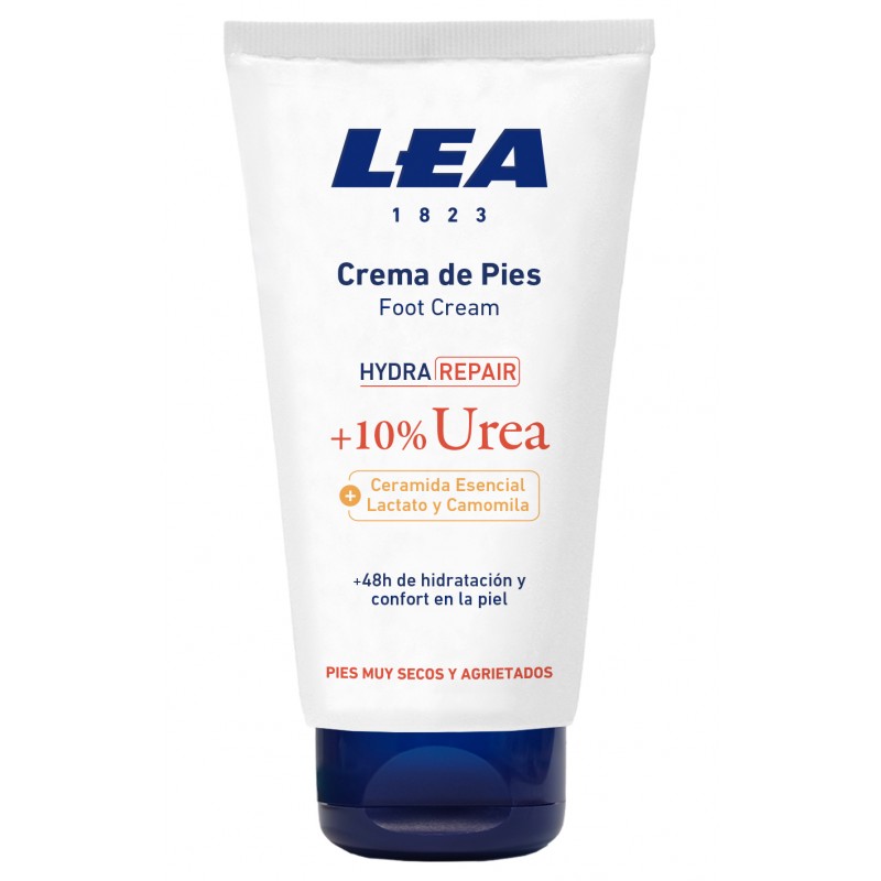 La crema de pies Hydra Repair de LEA es ideal para el cuidado de pies muy secos y agrietados. Con 10% Urea, 5% Glicerina, Lactato, Ceramida Esencial y Camomila, nutren, ayudan a reparar la barrera natural de la piel, mejorar la capacidad de hidratación de forma inmediata y duradera (+48h), para unos talones menos agrietados y unos pies más suaves, cuidados y hasta + 48 h de confort.