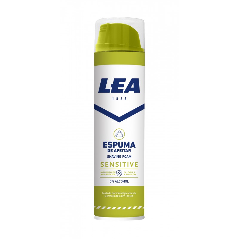 La espuma de Afeitar LEA SENSITIVE ha sido formulada para calmar y proteger las pieles más sensibles. Genera una espuma muy cremosa que suaviza la barba, hidrata y protege la piel, y facilita el deslizamiento de la cuchilla ayudando a prevenir las irritaciones - enrojecimiento, ardor, sequedad, tirantez y micro-cortes. Testado Dermatológicamente.